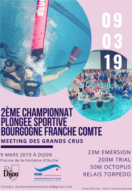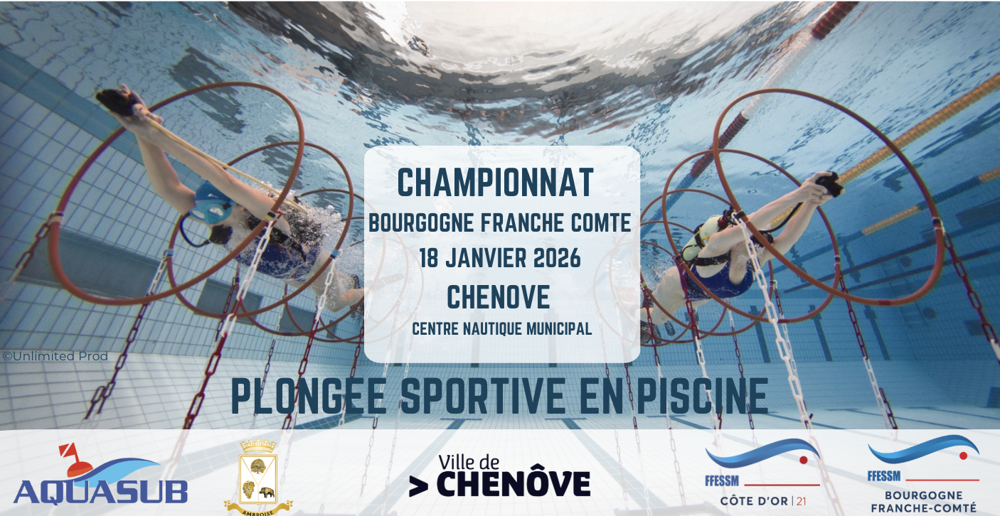 Le Comité Régional Bourgogne Franche-Comté et le CODEP21 organisent le 7ème championnat BFC de Plongée Sportive en Piscine ce dimanche 18 janvier 2026 à Chenôve (près de Dijon).