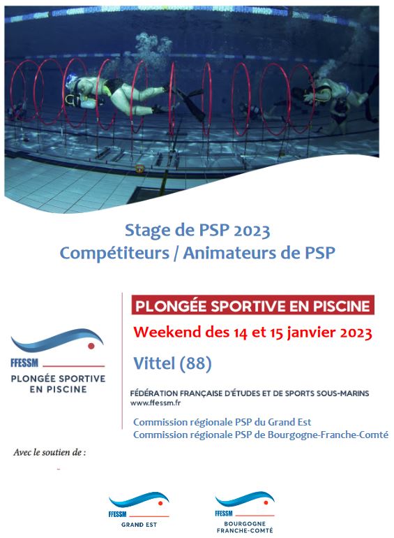 En partenariat sportif avec la région Grand Est et pour la première fois , la Commission Régionale Plongée Sportive en Piscine Bourgogne Franche Comté vous invite à participer à un stage qui se tiendra du 13 au 15 janvier 2023 à Vittel. Il est à destination de 2 publics différents: